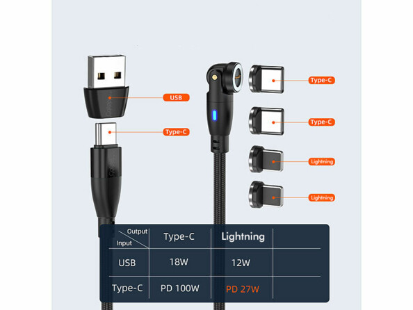- Sortie : 2 adaptateurs magnétiques pour chaque fiche USB-C et compatible Lightning