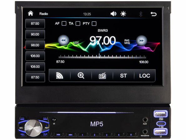 Équipé d’un écran escamotable de 7 pouces, ce poste de radio automobile assure une navigation claire et simple entre les différentes fonctions ainsi qu'une excellente qualité vidéo. En effet, il vous permet de visionner des vidéos en qualité Full HD notamment grâce à la prise en charge de fichiers MP5 1080p. De quoi divertir vos passagers pendant les longs trajets en voiture ! Outre le divertissement, l’écran tactile affiche également les lignes d’aide au stationnement lorsqu’une caméra de recul est installée dans votre véhicule. Avec une meilleure visibilité et une sécurité optimale, vous pouvez effectuer vos manœuvres de marche arrière et de stationnement en toute tranquillité.