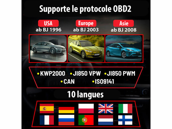 - Compatibilité : véhicules américains à partir de 1996, européens à partir de 2003, asiatiques à partir de 2008