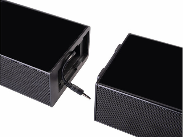 - 2 haut-parleurs pleine gamme et 2 haut-parleurs de basses orientés vers le bas