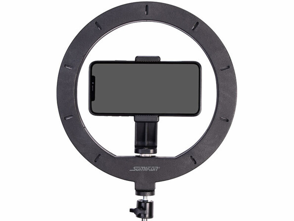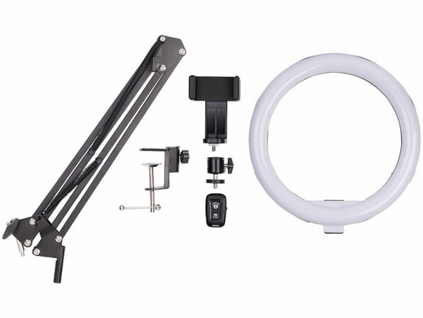 - Anneau LED 10" avec pied à ressort et support smartphone de la marque Somikon