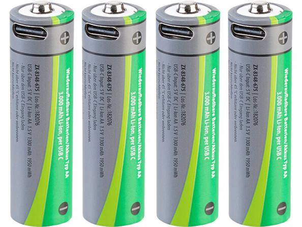 Kit de piles Li-Ion type AAA et AA, avec fonction de recharge USB-C à 24,99 €