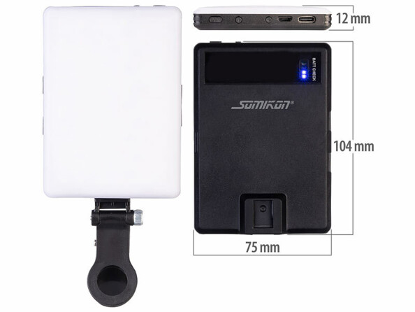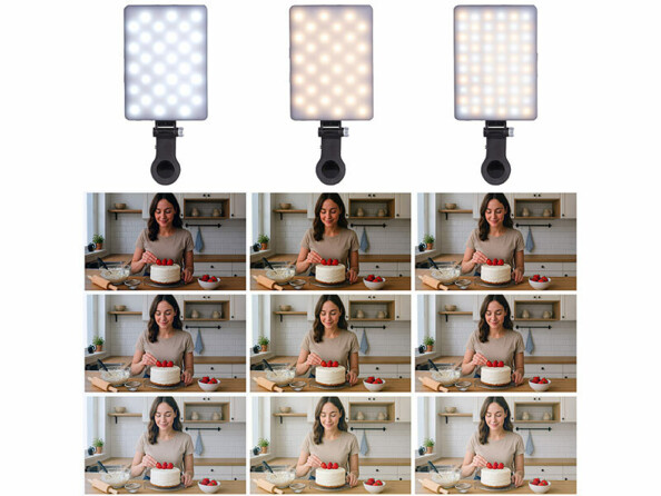 Cette lampe LED de la marque Somikon met votre visage en valeur en toute circonstance, que ce soit pour prendre des selfies, effectuer des appels vidéo ou prendre des photos destinées aux réseaux sociaux. Au total, 60 LED assurent un éclairage homogène pour des résultats optimaux. Et grâce à son clip pratique, vous pouvez la fixer rapidement et en toute sécurité à votre smartphone, tablette ou ordinateur portable.