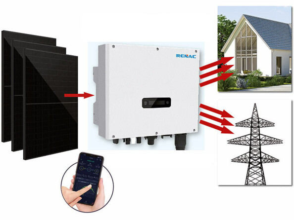 - Onduleur solaire on-grid triphasé 10 kW avec double tracker MPPT de la marque RENAC