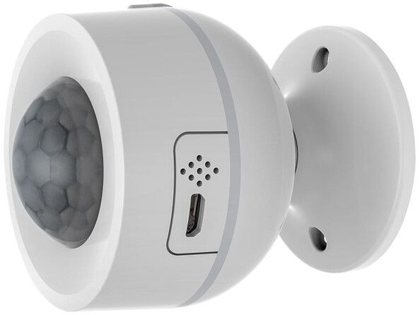 - Détecteur de mouvement PIR avec support intégré, câble Micro-USB, matériel de montage et mode d'emploi en français