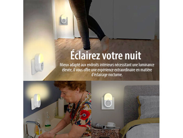 Déplacez-vous en toute sécurité la nuit grâce à la veilleuse LED à intensité variable. Celle-ci vous permet d'y voir clair et d'éviter les meubles et obstacles sur votre chemin. Un minuteur peut être réglé pour définir l'heure et la durée d'activation et ainsi adapter la lumière de la veilleuse à votre rythme quotidien.