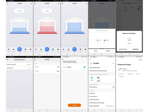 - Application gratuite "ELESION" sous iOS / Android : pour ouvrir et fermer la porte par appareil mobile, la contrôler par minuteur ou compte à rebours, et vérifier le statut (ouvert / fermé)