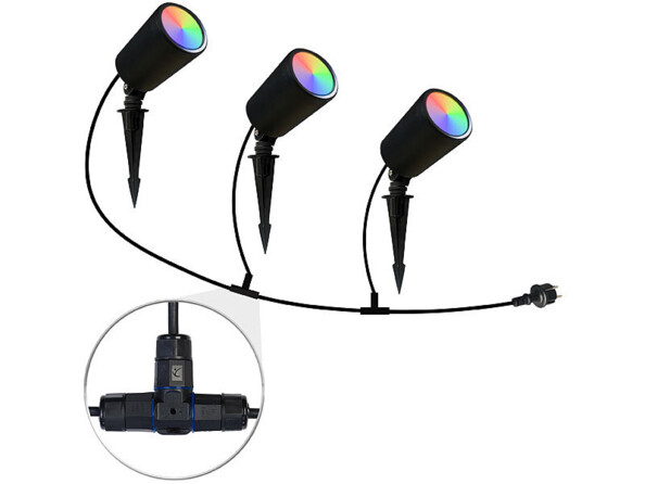 Ce pack de 9 spots connectés Luminea Home Control vous permet de mettre habilement votre jardin en scène. Créez des effets lumineux en mettant en avant vos arbres, vos plantes ou votre allée. Pour cela, vous disposez d'un panel de 16 millions de couleurs et d'une luminosité variable de blanc chaud à lumière du jour. Et grâce aux piquets ajustables, vous pouvez même mettre l'accent sur un élément précis !