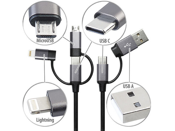 2 câbles de chargement et transfert USB-A/C vers USB-C/Micro-USB/Lightning