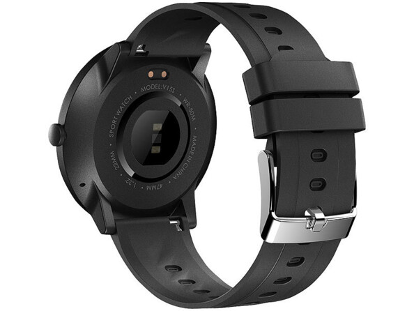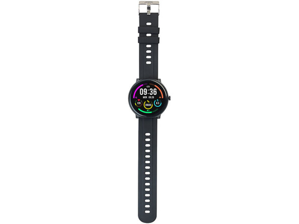 - Dimensions du boîtier (Ø x H) : 47 x 11 mm, bracelet en silicone (L x l) : 205 x 20 mm, poids : 40 g