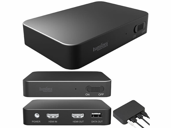 - Contrôle de la lumière par boîtier de synchronisation pour détection de l'image télévisée via signal vidéo HDMI : adapte l'éclairage au contenu de l'écran