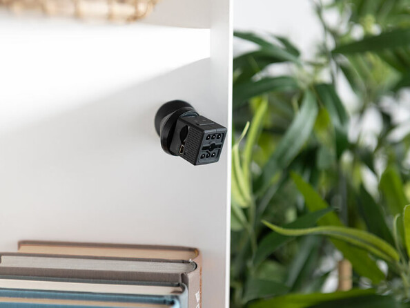 - Support à tête sphérique pour orienter la caméra de manière flexible (par ex. sur un mur ou une étagère)