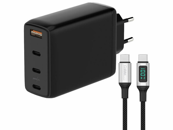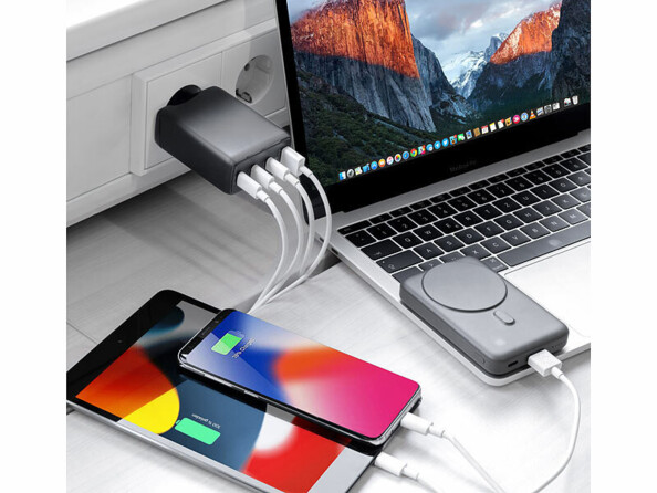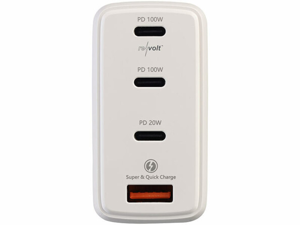 Grâce à deux ports USB-C dotés de la fonction de charge rapide Power Delivery, cet adaptateur secteur de la marque Revolt recharge ultra rapidement les appareils compatibles avec un courant jusqu’à 100 W ! Quant à son port USB-A, celui-ci fournit une puissance supplémentaire de 22,5 W pour alimenter les appareils mobiles dotés de la fonction Quick Charge. Ce bloc d'alimentation offre ainsi au total un courant de charge jusqu'à 120 W vous permettant de recharger jusqu'à 4 appareils mobiles USB en même temps. Que vous souhaitiez charger un smartphone, une tablette, un MacBook ou tout autre appareil électrique compatible, vous êtes certain que votre appareil fait le plein d’énergie en un clin d’œil !