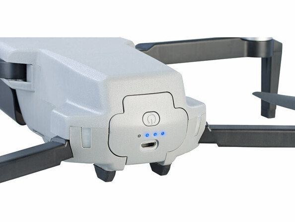 - Alimentation du drone : batterie lithium-ion 2200 mAh remplaçable pour jusqu'à 22 min de vol, chargement par USB (chargeur secteur USB non fourni)