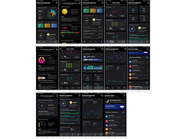 - Enregistrement continu des données fitness : température en continu, saturation en oxygène du sang toutes les 2 heures, fréquence cardiaque avec intervalles réglables de 10, 20 ou 30 minutes