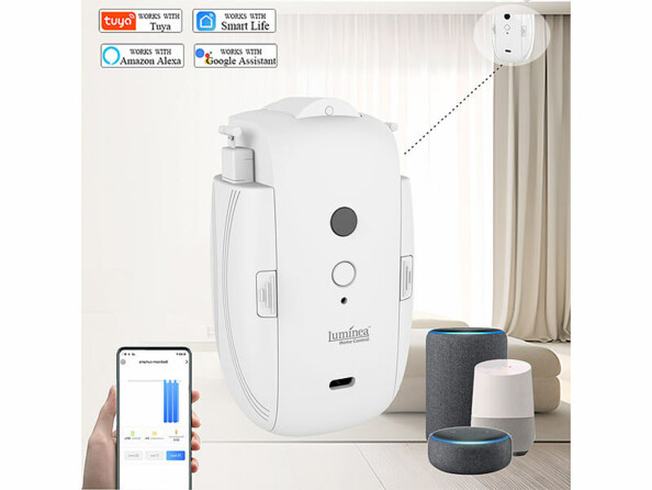 Automatisez vos rideaux à moindre frais grâce aux deux robots ouvre-rideaux connectés avec batterie et à la passerelle wifi fournie en accessoire de la marque Luminea Home Control ! Vous n'avez même pas besoin de changer de tringle, encore moins de rideau : les petits robots se glissent sur les tringles ou les rails déjà présents chez vous, et ouvrent ou ferment vos rideaux soit sur vos ordres, soit de façon autonome !