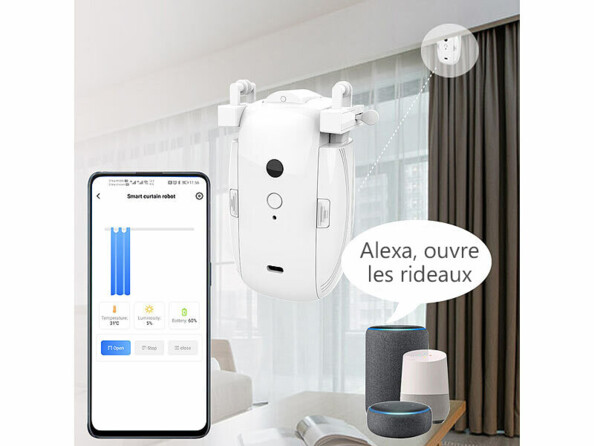 - 2 robots ouvre-rideaux connectés avec batterie de la marque Luminea Home Control