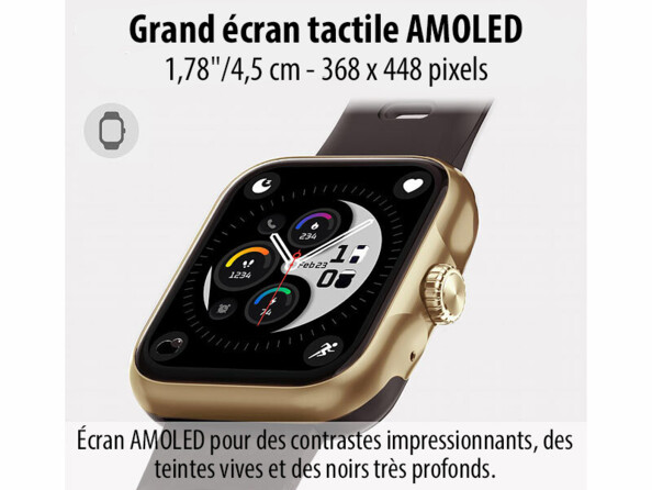- Grand écran tactile AMOLED de 1,78" / 4,5 cm de diagonale, 368 x 448 px