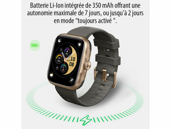 - Fonction Always On : l'écran reste allumé à la demande, jusqu'à 2 jours