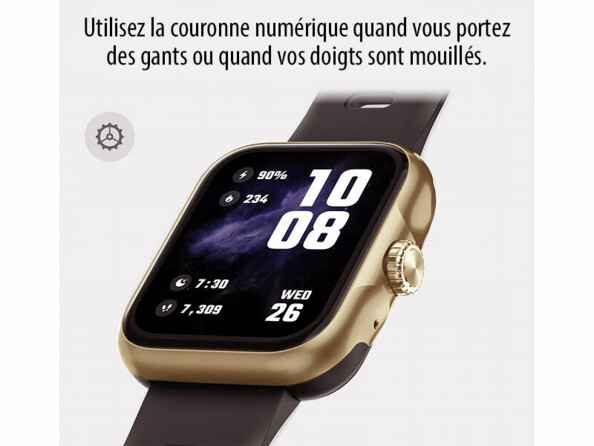 - Couronne numérique pour contrôle facile, particulièrement pratique si vous portez des gants ou avez les doigts mouillés