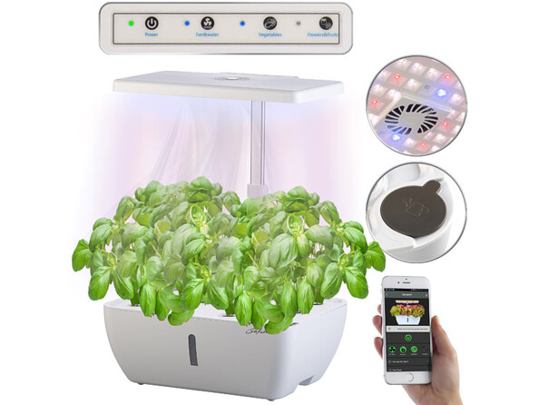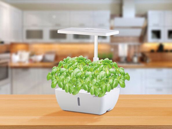 Avec ce nouveau mode de culture intelligent, vous offrez les conditions optimales à vos fleurs, fruits ou légumes. Grâce à un éclairage qui reproduit la totalité du spectre lumineux et à un substrat spongieux spécial, les plantes poussent efficacement en toute saison. Pour s'adapter à la taille de la plante au fur et à mesure de sa croissance, le dispositif d'éclairage est réglable en hauteur.