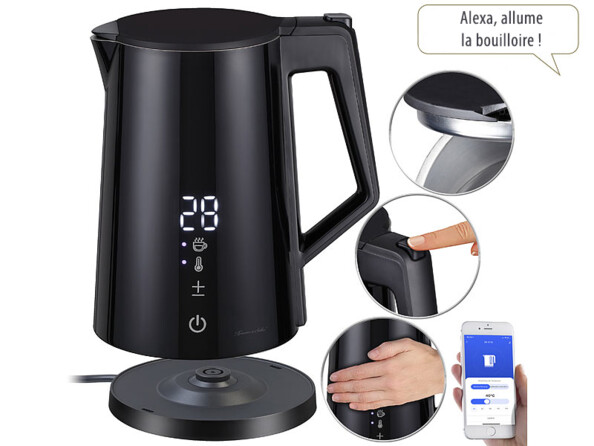 - Compatible Amazon Alexa et Google Assistant : bouilloire commutable par commandes vocales via Amazon Echo, Google Home et autres haut-parleurs compatibles