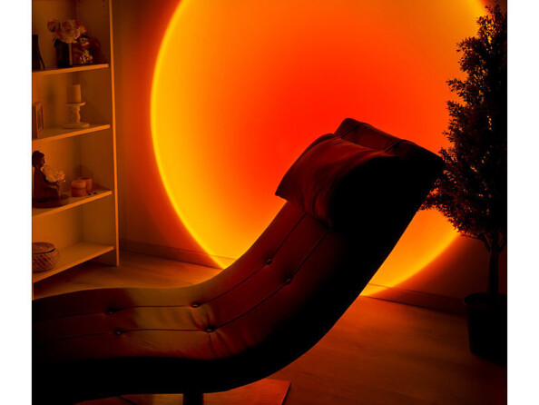Ce projecteur LED de la marque Pearl vous permet d’afficher un coucher de soleil resplendissant sur le mur de votre chambre.