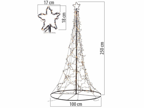 - Sapin avec filet LED avec étoile, 3 barres centrales, 4 barres de sol, 4 barres de raccord, matériel de montage et mode d’emploi en français