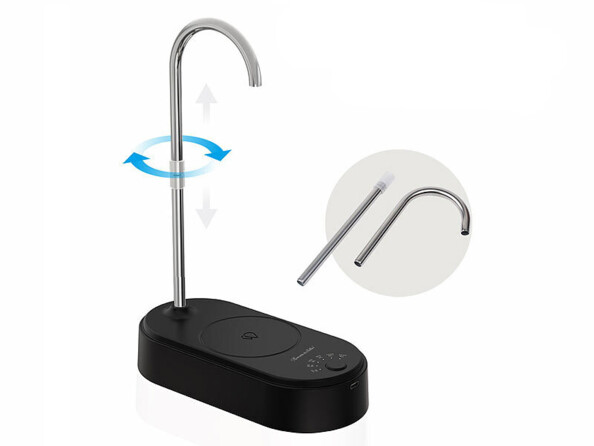Cette fontaine à eau réglable rechargeable coloris noir vous permet de vous désaltérer tout au long de la journée. Grâce à sa sortie d'eau réglable en hauteur et à son support pour gobelet, l'appareil convient à tous les récipients. Choisissez parmi les 6 dosages proposés : remplissez aussi bien votre gobelet que votre gourde !