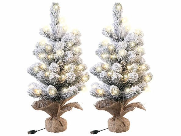 Avec ces deux sapins de Noël USB enneigés à LED 56 cm de la marque infactory, faites entrer l'esprit de Noël dans votre maison. Les 50 LED baignent les arbres d'une lumière chaude et la fausse neige apporte une touche hivernale à l'ensemble. Créez une ambiance chaleureuse et festive, que ce soit dans le salon, sur la table ou dans les petites pièces.