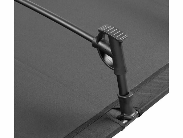 Le sac de transport pratique vous permet d'emporter le lit de camp partout où vous allez dans un petit contenant. Le montage du lit est également un jeu d'enfant. Il suffit de faire glisser les barres de soutien dans les raccords, de fixer les paires de pieds et votre couchage est fin prêt !