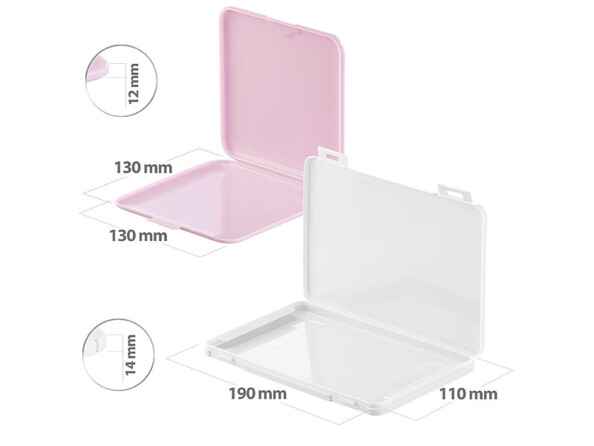 - Dimensions des étuis carrés : 130 x 130 x 14 mm, poids : 47 g