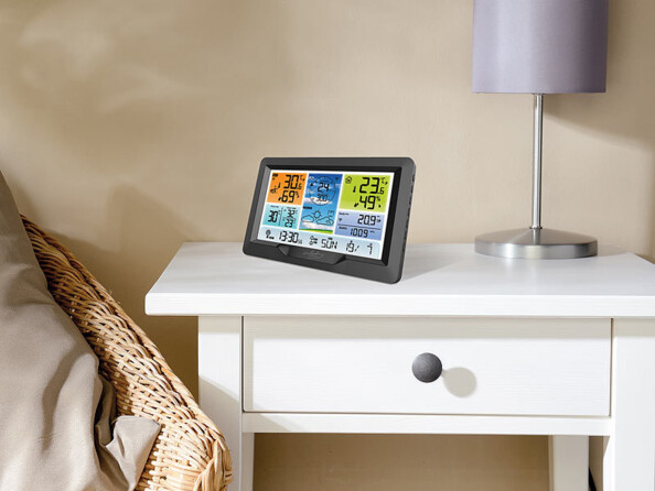 Ne manquez plus la météo avec cette station météo sans fil FWS-300.xl à écran couleur XL, capteur extérieur et réveil !