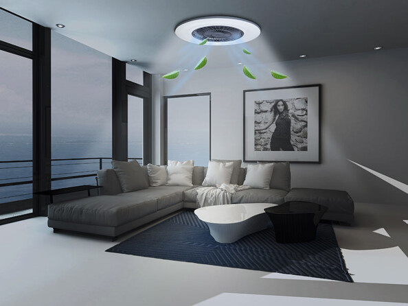 Le plafonnier LED CCT connecté Sichler Haushaltsgeräte n'est pas un plafonnier ordinaire : il est équipé d'un ventilateur à 7 pales internes !