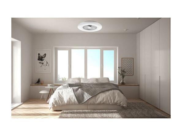 Il vous procure à la fois un éclairage puissant de 3000 lumens et une ventilation agréable. Petit plus : le ventilateur est réversible. Cela signifie qu'il émet de la fraîcheur en été et de la chaleur en hiver selon vos besoins. Sa vitesse est également réglable parmi 6 niveaux disponibles. La température de couleur de l'éclairage est quant à elle réglable de blanc chaud à blanc lumière du jour.