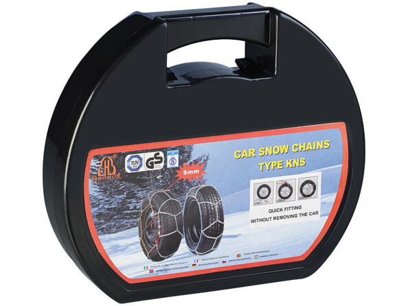 - Jeu de chaînes à neige (2 pièces) avec maillons de chaîne de rechange, boîte de transport et mode d’emploi en français