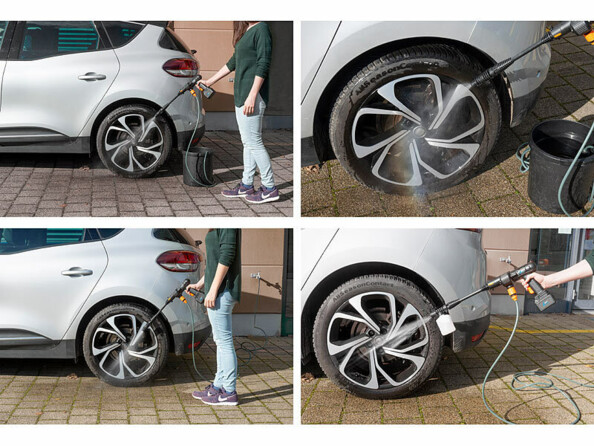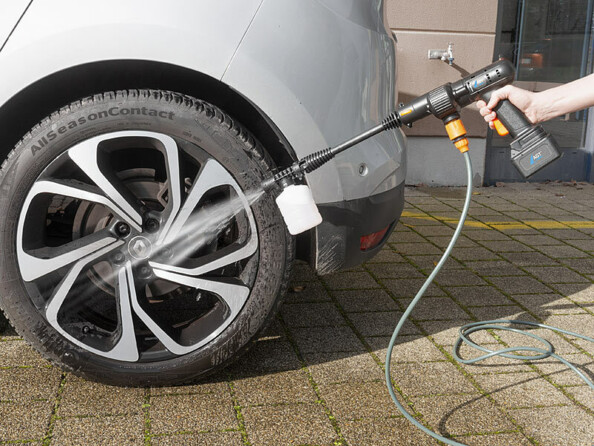 Totalement indépendant d'un raccordement à un réseau électrique ou à un robinet, le nettoyeur à pression est prêt à l'emploi partout et à tout moment. Il suffit de garder à disposition un seau rempli d'eau et c'est parti pour le grand nettoyage ! Vous pouvez même approvisionner l’appareil en eau de manière permanente en le raccordant à votre tuyau d'arrosage en un seul clic par le biais de l’adaptateur fourni. Ainsi, vous n’avez plus à vous soucier de l'approvisionnement en eau. Grâce à sa batterie longue durée et à une pression de 30 bar, vous pouvez éliminer même les saletés les plus tenaces. Et avec un poids plume d’à peine 2 kg, le nettoyeur à pression est en outre léger et maniable.