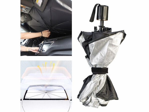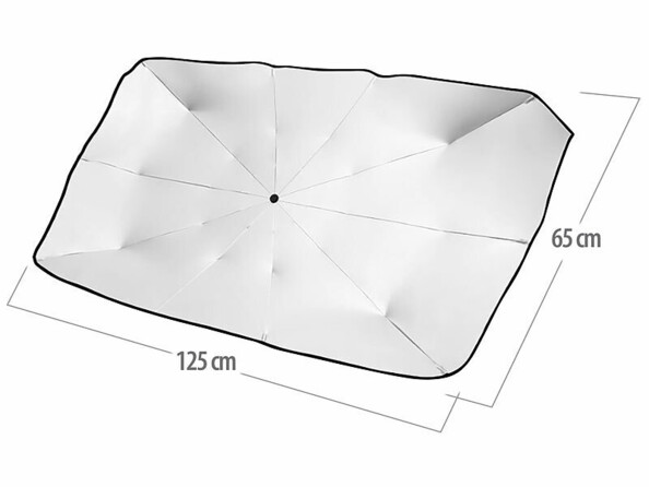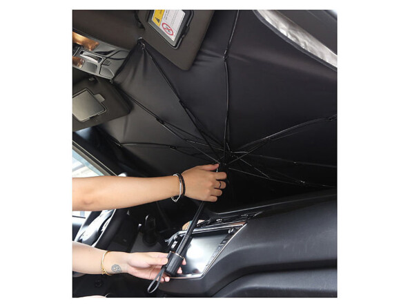 Facile à utiliser, le pare-soleil fonctionne comme un parapluie. Il suffit de le placer sur la vitre depuis l'intérieur, d'actionner le bouton-poussoir situé sur la poignée et le pare-soleil se déploie. Il ne reste plus qu'à l'orienter et le tour est joué.