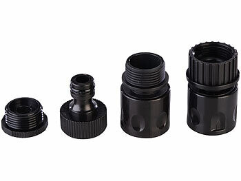 Installation rapide : vissez les filetages de 2,5 cm (1") directement sur votre arrivée d'eau compatible. C'est tout simple ! Vous pouvez aussi utiliser les adaptateurs fournis et l'ingénieux système de clic pour raccorder le tuyau à diverses arrivées d'eau.