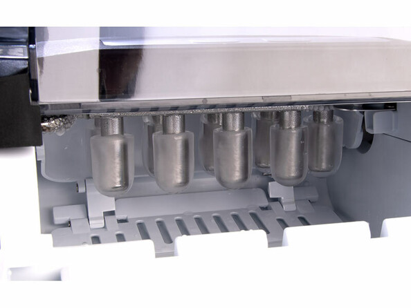 Grâce à sa vitesse impressionnante, l'appareil produit 9 glaçons toutes les 8 minutes par simple pression sur un bouton. |