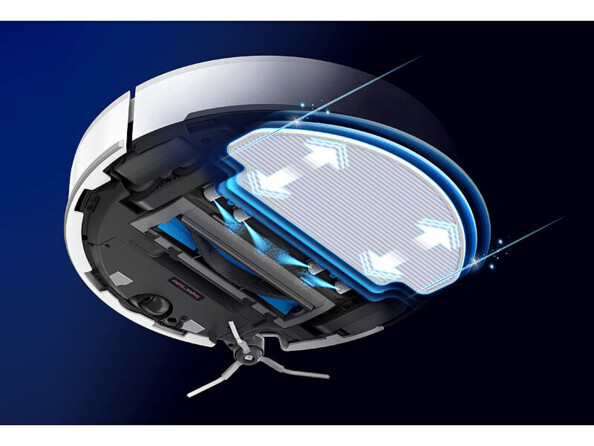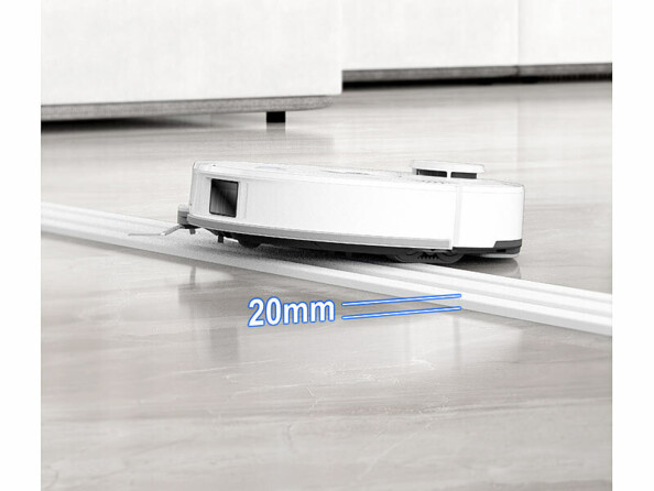 - Détecte automatiquement les obstacles plats (par ex. tapis) et rehausse le support à serpillière de 8 mm