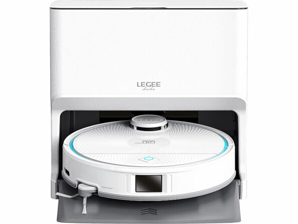 - Station de nettoyage : remplit le réservoir d'eau du robot, recharge sa batterie, nettoie et sèche la serpillière du robot
