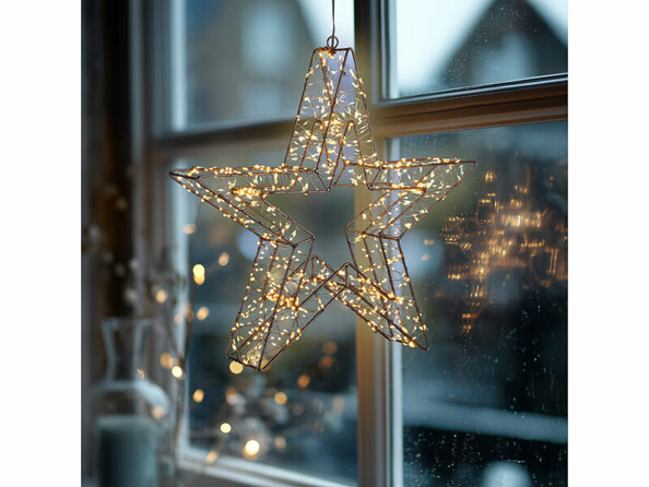 Grâce à sa structure résistante aux éclaboussures, l'étoile peut être accrochée aussi bien en intérieur qu'en extérieur ; ainsi, décorez votre balcon, votre terrasse ou votre salon de jardin sans craindre la pluie. Son long câble vous permet en outre de placer la décoration où bon vous semble. Branchez simplement l'étoile sur une prise secteur et profitez d'une somptueuse atmosphère lumineuse.