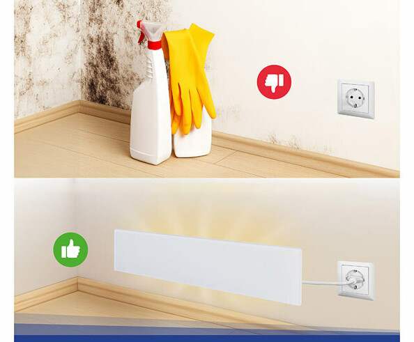 Éliminez les moisissures sans utiliser de produits nettoyants agressifs grâce au panneau infrarouge de la marque Sichler Haushaltsgeräte ! Ce destructeur de moisissures à infrarouge utilise la chaleur naturelle pour traiter efficacement les zones touchées, sans produits chimiques, sans vapeurs et sans résidus, ce qui est idéal pour la salle de bains et les pièces intérieures.