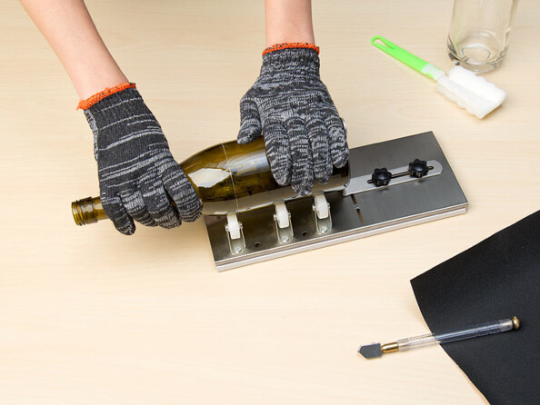 Ce coupe-verre vous permet de transformer des bouteilles en vases, porte-bougie ou socles de lampes, pour les recycler de manière originale. Les roues offrent un support stable et permettent ainsi de couper le verre de manière propre et régulière. Une fois le verre tranché, lissez les bords à l'aide du papier abrasif fourni. Vous pouvez alors laisser libre cours à votre imagination pour personnaliser votre création.