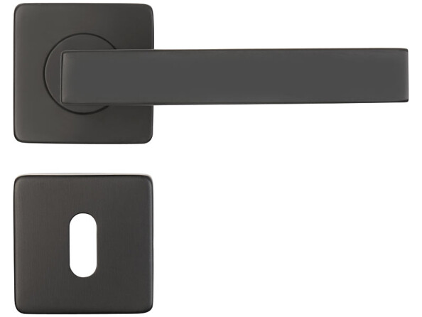 - Garniture comprenant 2 poignées, 2 rosaces de béquille, 2 rosaces de clé, 1 carré et le matériel de montage
