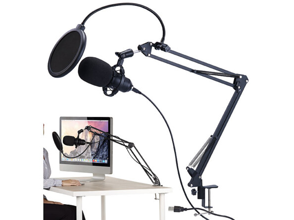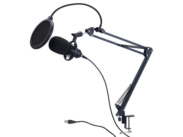- Microphone à condensateur USB professionnel avec support articulé, par Auvisio