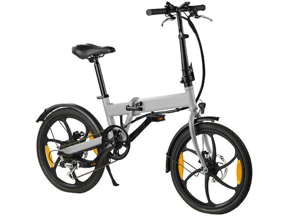 - Vélo électrique pliable avec batterie lithium-ion, câble de chargement, feu avant et arrière, catadioptres, matériel de montage et mode d'emploi en français
