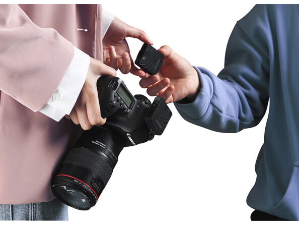 Très malin, le récepteur se place sur le sabot de flash de votre caméra et procure une qualité sonore optimale jusqu'à 25 mètres de l'émetteur.
