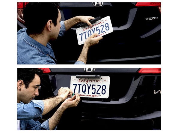 - Fixation simple : à visser ou coller sur le support de la plaque d'immatriculation